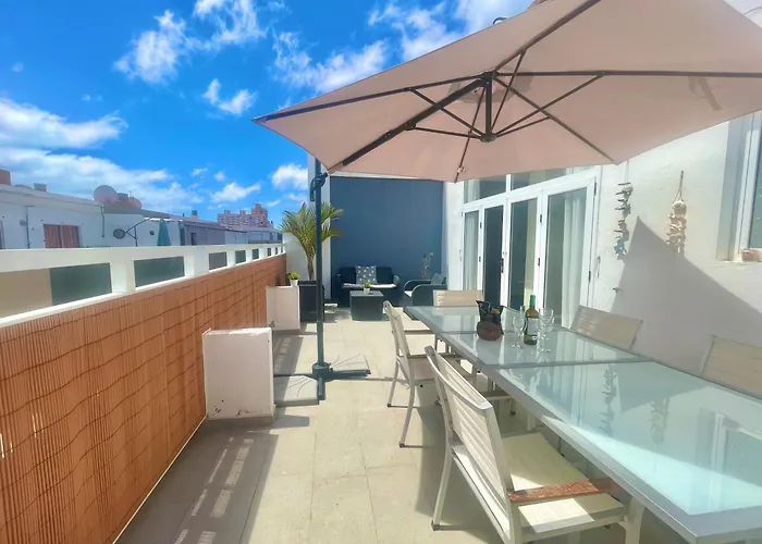 Das 2-Zimmer-Sunny Terrace Apartment Las Palmas / Gran Canaria bietet einen Blick auf die Stadt und liegt 10 Minuten zu Fuß vom Museo Elder de la Ciencia y la Tecnología entfernt